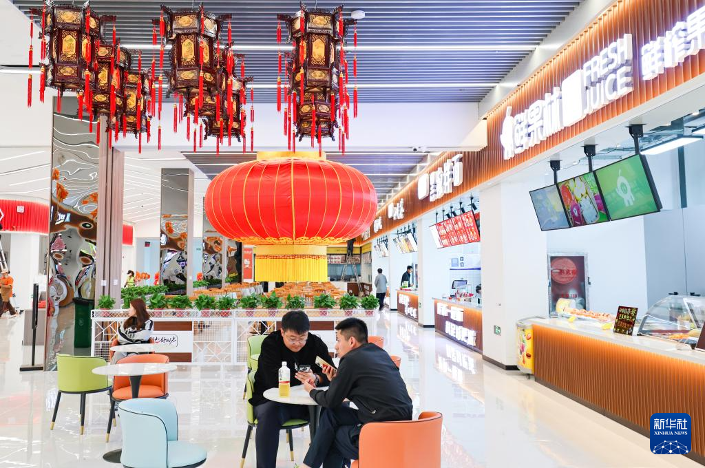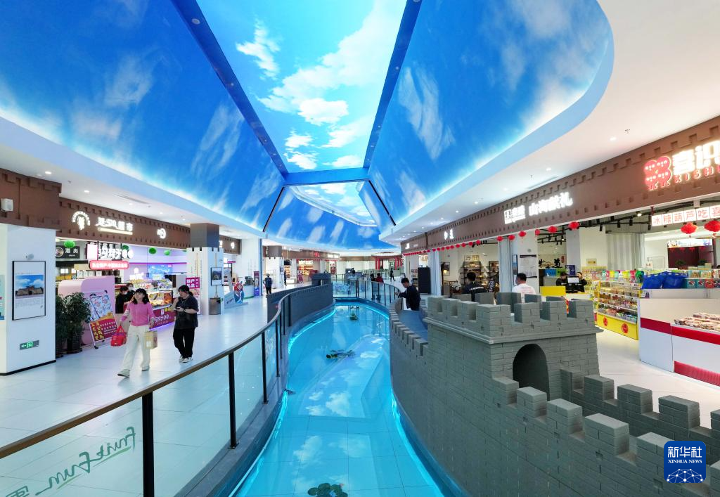 5月9日,司乘人员在京哈高速河北段山海关服务区休整大厅的商业区休闲购物。