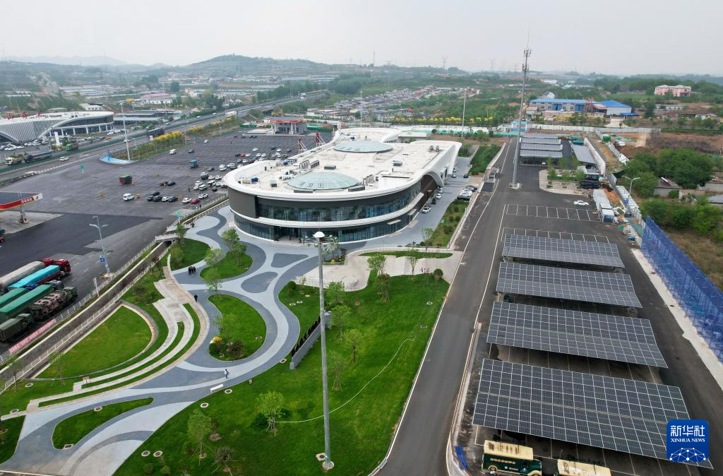 这是5月9日拍摄的京哈高速河北段山海关服务区(无人机照片)。