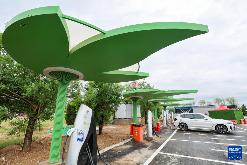 5月9日,新能源车辆在京港澳高速河北段石家庄东服务区的充电区域充电。
