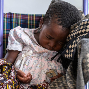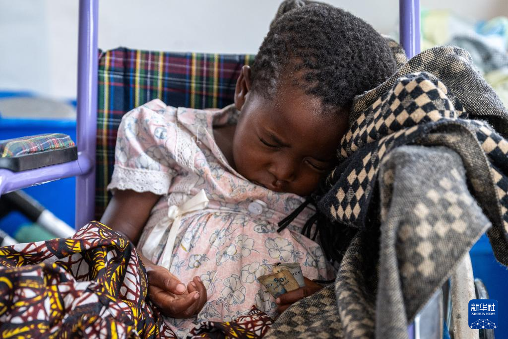 5月10日,一名女孩在刚果(金)戈马市恩多绍医院病房内熟睡。
