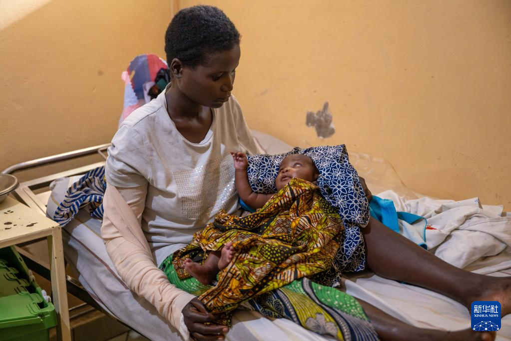5月10日,在刚果(金)戈马市恩多绍医院,一名在刚果(金)东部冲突中手臂受伤的母亲照顾自己的孩子。