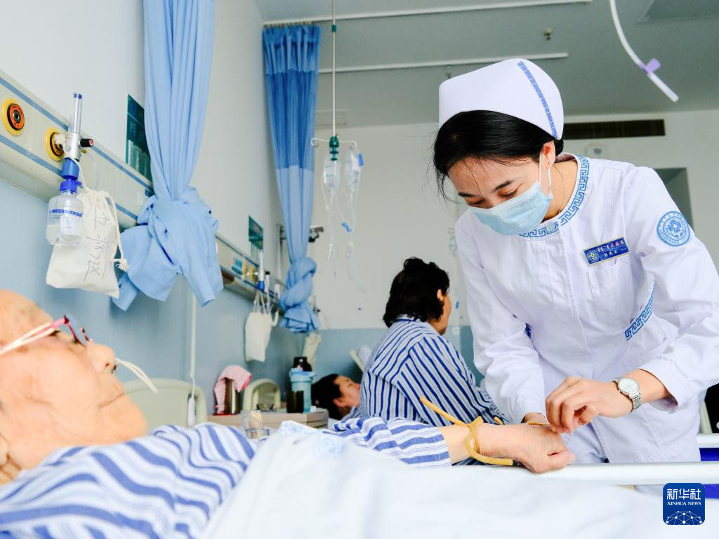 当日是国际护士节,内蒙古自治区国际蒙医医院的护士们忙碌在岗位上。他们将蒙医茶酒、艾灸等传统疗法与现代护理技术相结合,为患者提供具有民族医药特色的护理服务。