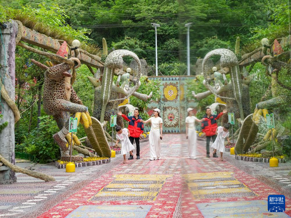 走进植物园,除了各式各样的植物,以酒瓶碎片、马赛克为原料设计构成的植物雕像和壁画随处可见,这些艺术装置在社交媒体上广泛传播,吸引了不少游客慕名而来拍照打卡。