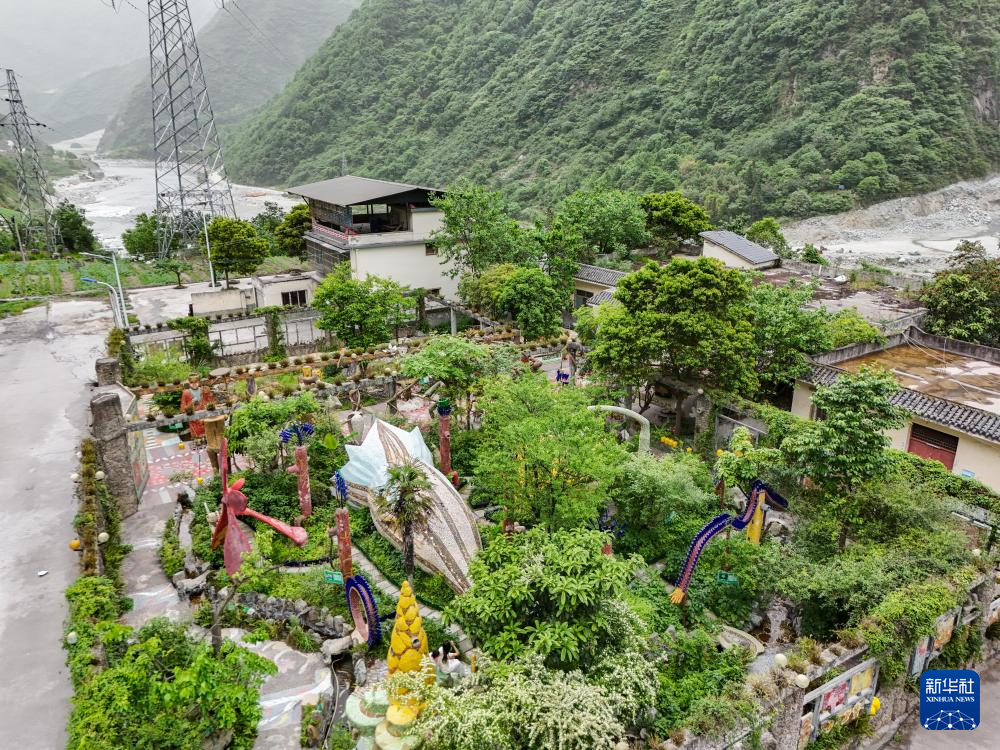 这是5月9日在四川省阿坝藏族羌族自治州汶川县映秀镇拍摄的汶川植物园(无人机照片)。