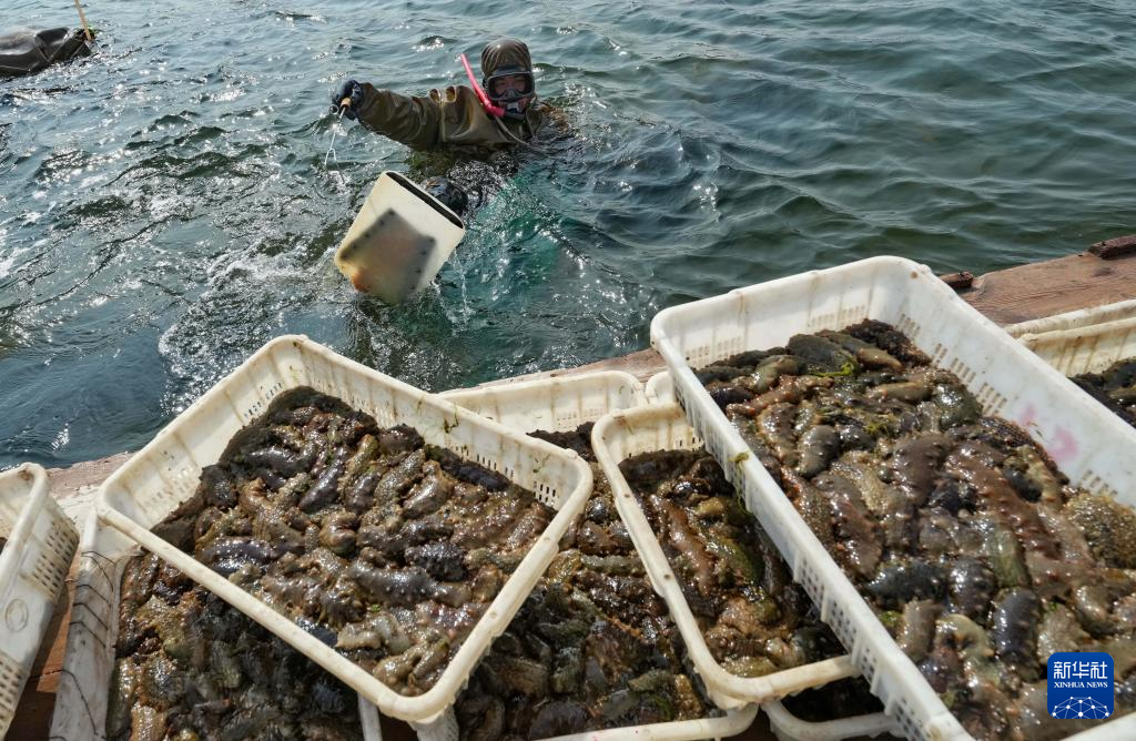 目前,河北省昌黎县海参养殖基地迎来收获期,当地养殖户开始适时捕捞海参,供应市场。近年来,昌黎县充分利用沿海资源优势,引导渔民发展海参养殖产业,促进增收。据介绍,目前该县海参养殖规模达4.5万亩,年产值超1.5亿元。