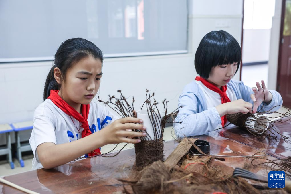 近年来,浙江省诸暨市陶朱街道中心学校下属各幼儿园、小学、中学深耕传统文化传承,陆续开设榫卯、扎染、棕编、武术等特色传统文化课程,为学生们打开一扇领略中华传统文化魅力的大门。