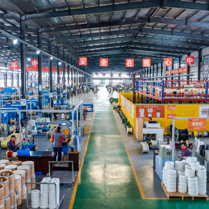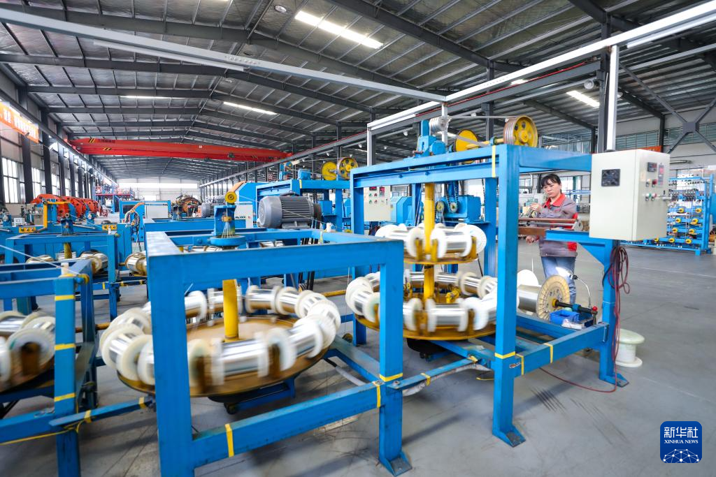 5月13日,工人在位于江苏省兴化市戴南镇的江苏银锡高温线缆有限公司车间进行生产作业。