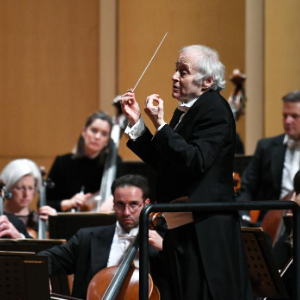 5月13日,指挥家亚当·费舍尔在北京大学2025五四交响音乐会现场指挥。