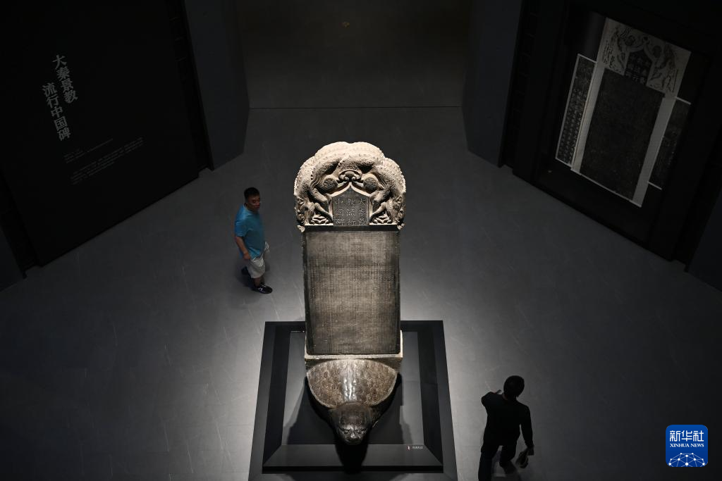 5月12日,游客在改扩建后的西安碑林博物馆北区场馆参观石碑。