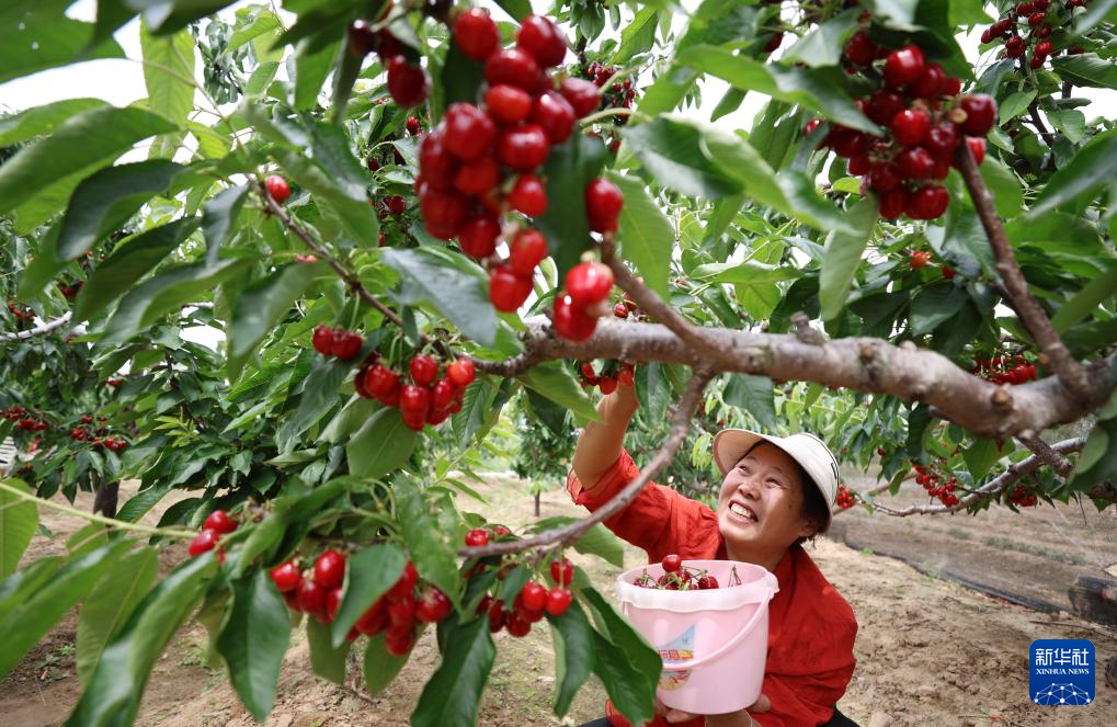 5月13日,山东省临沂市郯城县郯城街道薛城后村村民在采摘大樱桃。