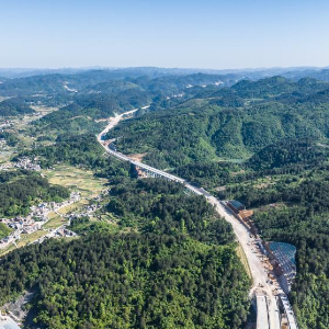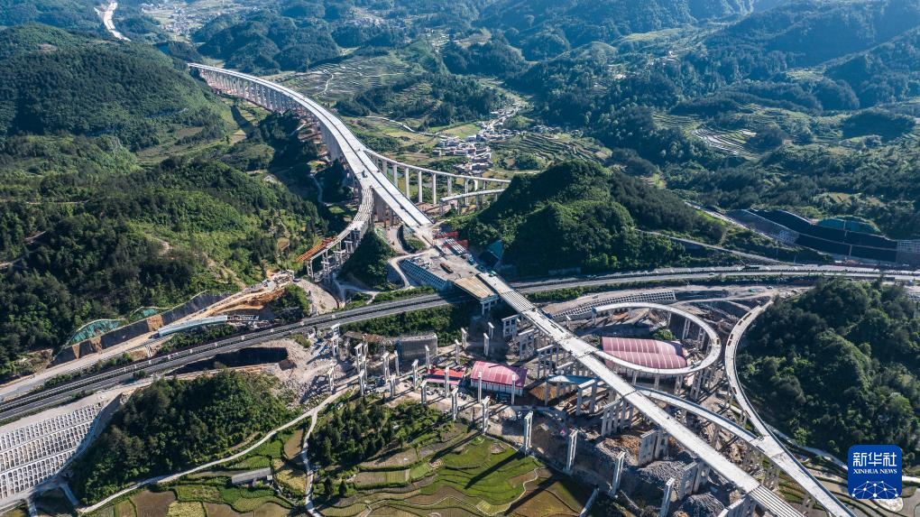建设中的贵平高速昌明枢纽(5月12日摄,无人机照片)。