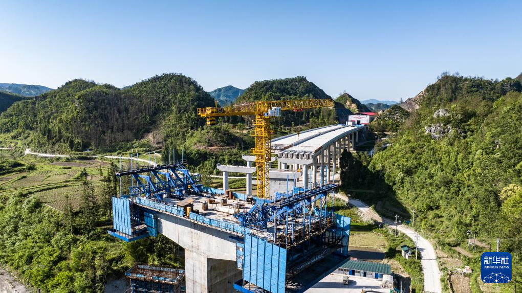 建设中的贵平高速底至特大桥(5月12日摄,无人机照片)。