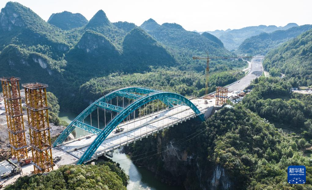 主体结构已建设完成的贵平高速拉密河大桥(5月13日摄,无人机照片)。
