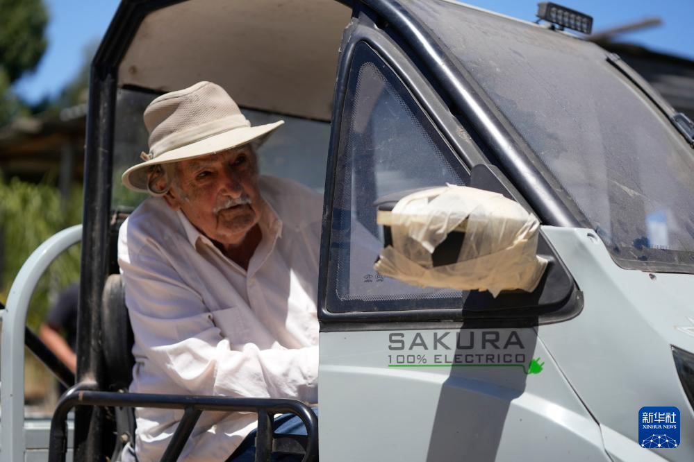 这是何塞·穆希卡在乌拉圭蒙得维的亚一处农场驾驶电动汽车的资料照片(2月3日摄)。