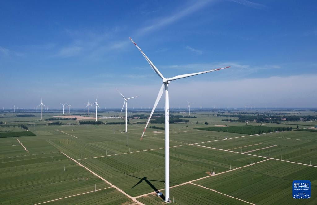 5月15日拍摄的故城县三朗镇附近的风电场(无人机照片)。
