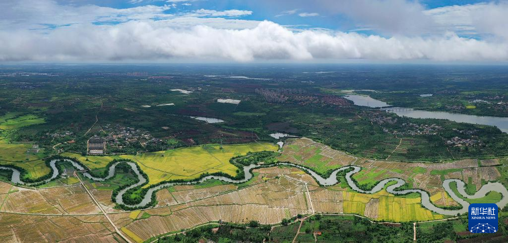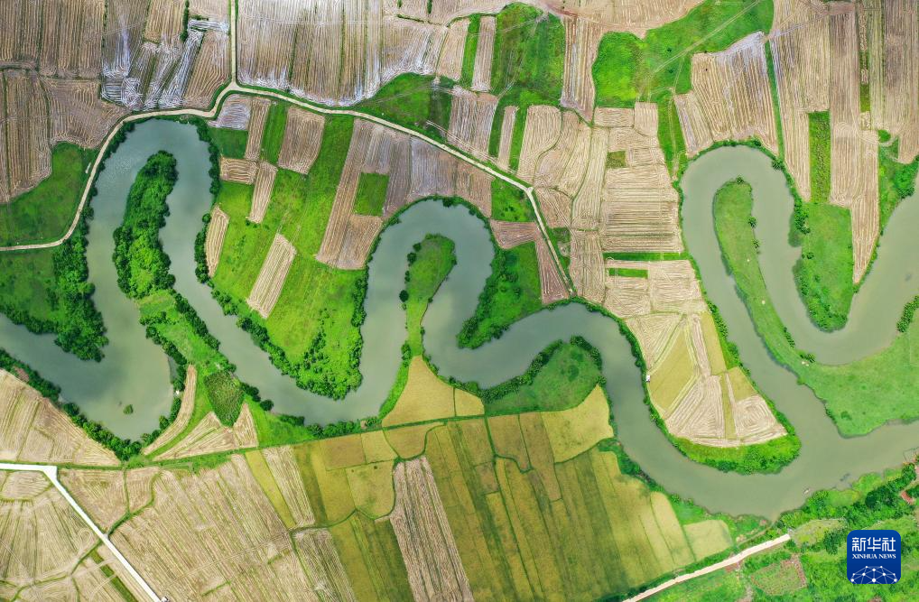 5月15日拍摄的三十六曲溪两岸的稻田(无人机照片)。