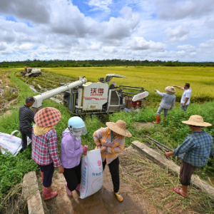 进入5月,位于海口市琼山区云龙镇三十六曲溪两岸的早稻进入夏收时节。当地农民趁着晴好天气,忙着收割、晾晒稻谷。
