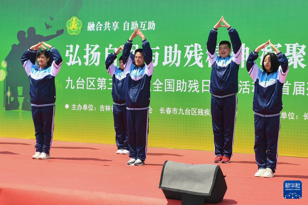 5月15日,在吉林省长春市九台区善满家园残障人综合服务中心,九台区特殊教育学校的残障学生表演手语舞蹈。