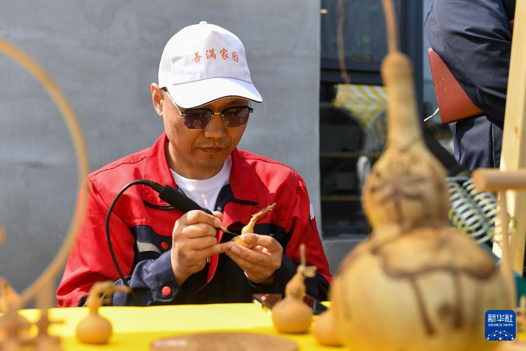 5月15日,在吉林省长春市九台区善满家园残障人综合服务中心,残障手工艺人现场展示制作手工艺品。
