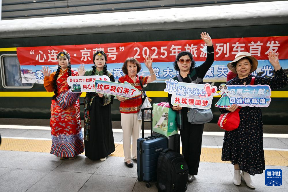 当日,“心连心·京藏号”2025年旅游列车在北京首发。14天的旅程中,列车将途经西宁、拉萨、林芝等地,游客们沿途可以游览西藏著名人文和自然景观。