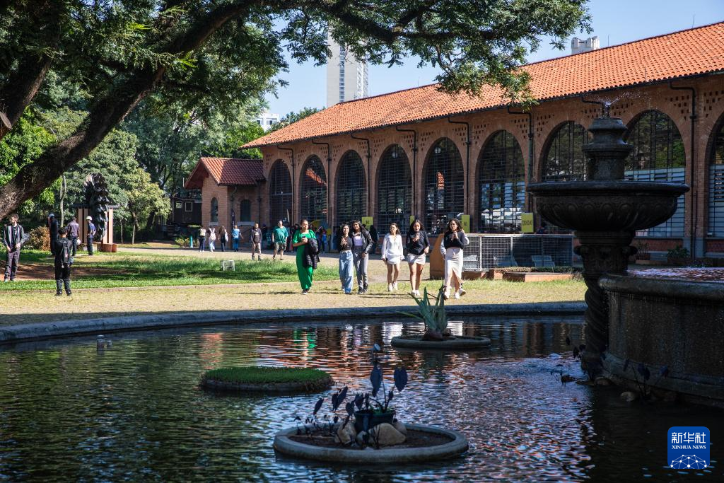 5月15日,参观者游览巴西圣保罗卡塔文图博物馆外庭院。