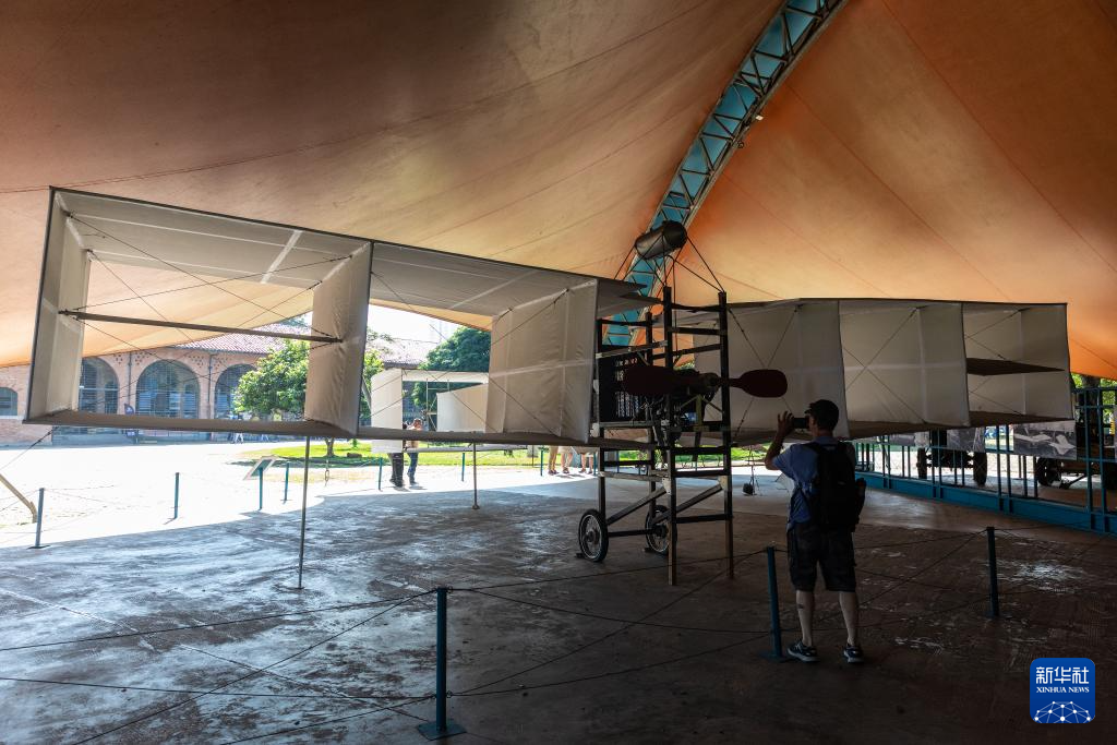 5月15日,在巴西圣保罗的卡塔文图博物馆,参观者拍摄展出的早期飞机模型。