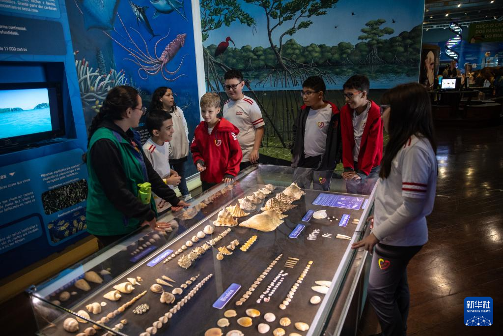 5月15日,在巴西圣保罗的卡塔文图博物馆,学生参观海洋生物标本。