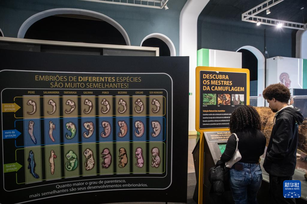 5月15日,在巴西圣保罗的卡塔文图博物馆,参观者在一处展区了解不同动物胚胎的发育对比。