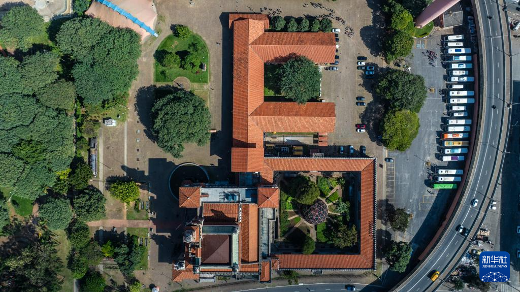 这是5月15日在巴西圣保罗市中心拍摄的卡塔文图博物馆(无人机照片)。
