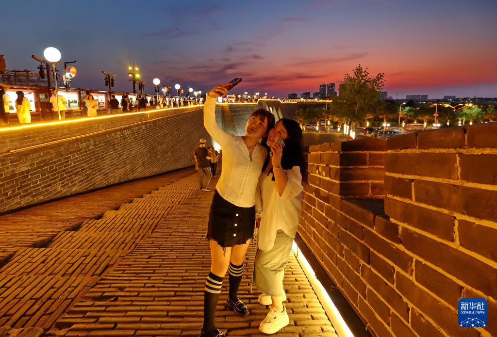 5月14日,游客在正定古城城墙上拍照。