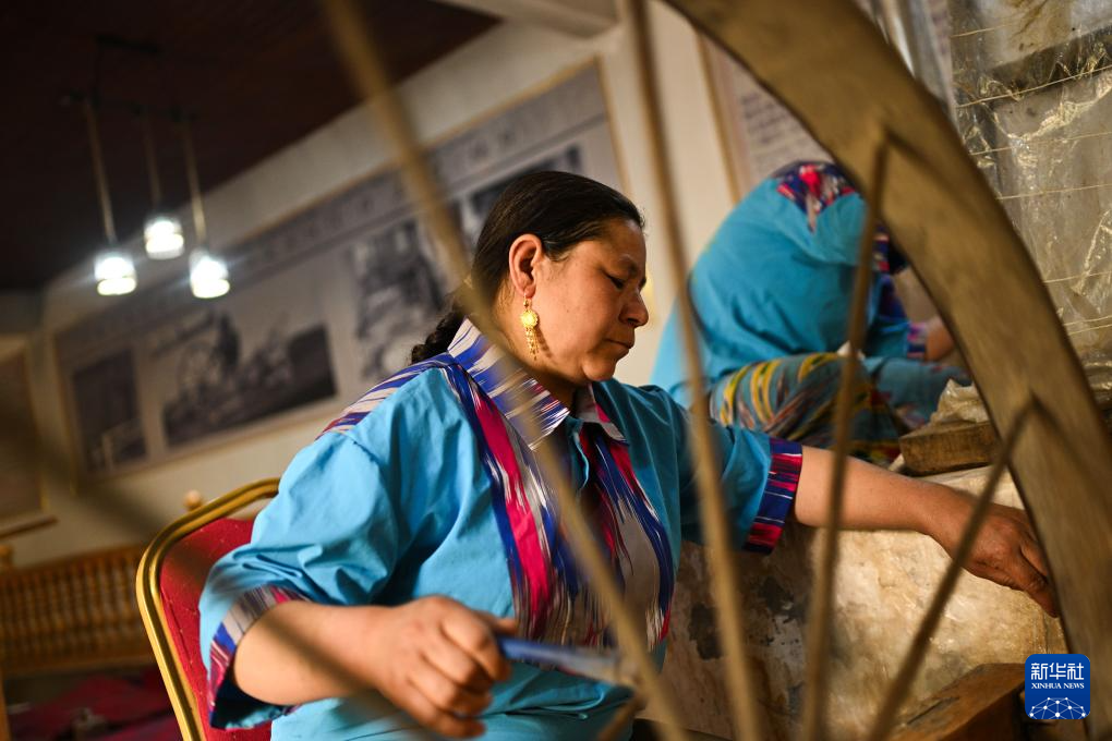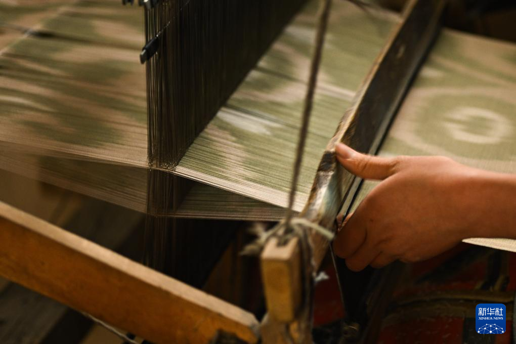 如今在和田吉亚乡,仍保留着古老的扎染技术和木制织布机,这里被视为艾德莱斯绸的主要发源地。当地百姓以艾德莱斯为荣,人们争做非遗技艺的传承者。走进吉亚乡,织布机“哒哒”声不绝于耳,古老技艺在这里的家家户户赓续传承。
