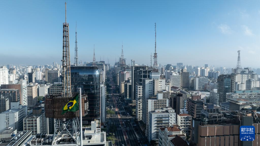 这是5月15日在巴西圣保罗拍摄的保利斯塔大道及沿线建筑(无人机照片)。