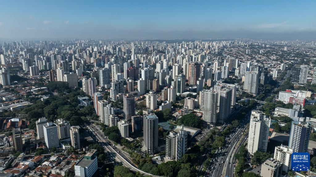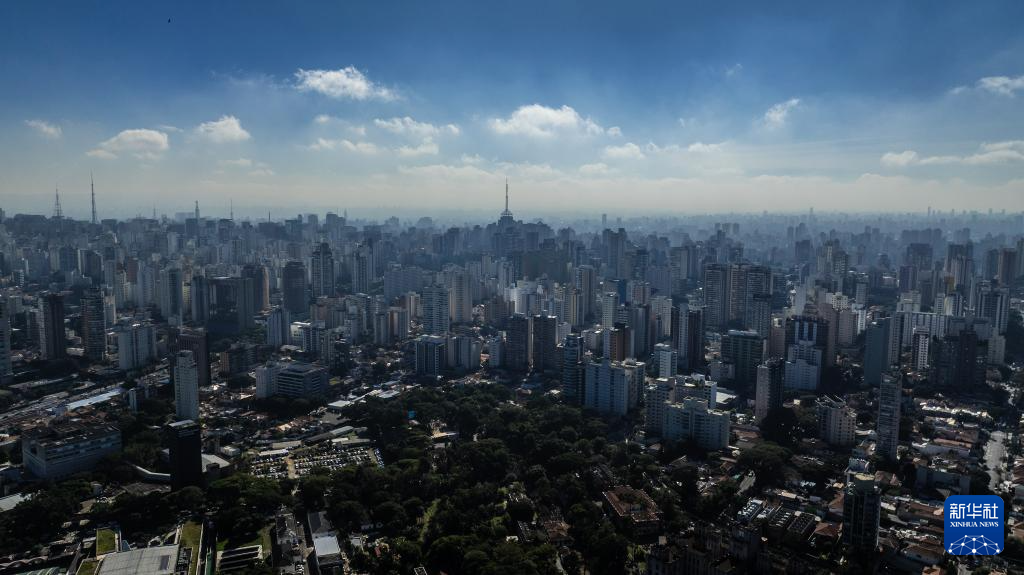 这是5月15日在巴西圣保罗拍摄的圣保罗市居民区与商业区交汇的城市风貌(无人机照片)。