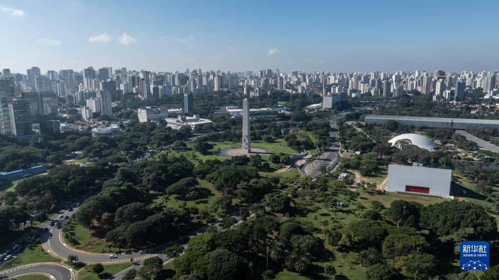 这是5月15日在巴西圣保罗拍摄的伊比拉布埃拉公园区域及圣保罗地标性纪念碑(无人机照片)。