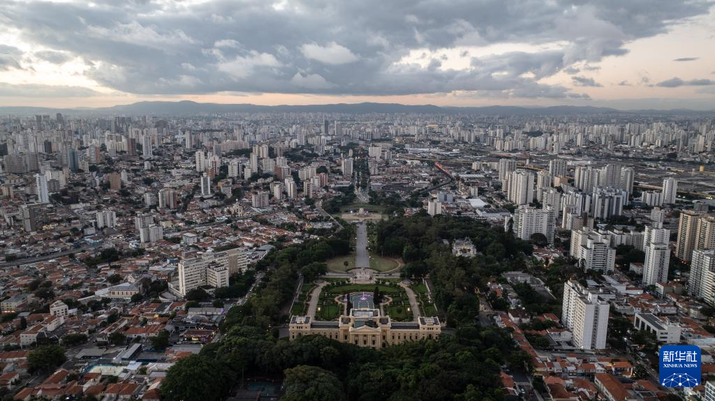 这是5月14日在巴西圣保罗拍摄的伊皮兰加拉博物馆和独立公园(无人机照片)。