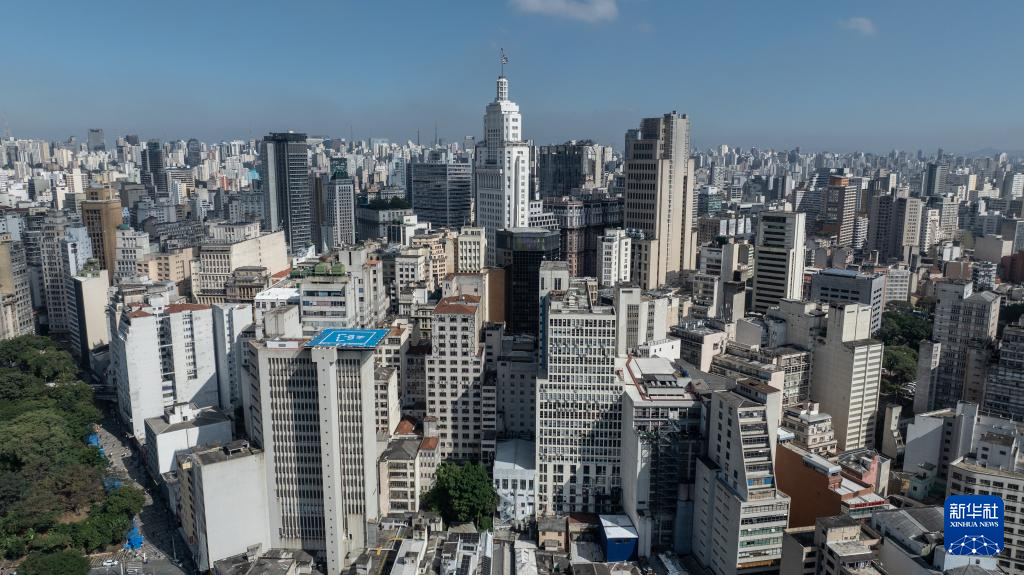这是5月15日在巴西圣保罗拍摄的圣保罗市中心建筑群(无人机照片)。