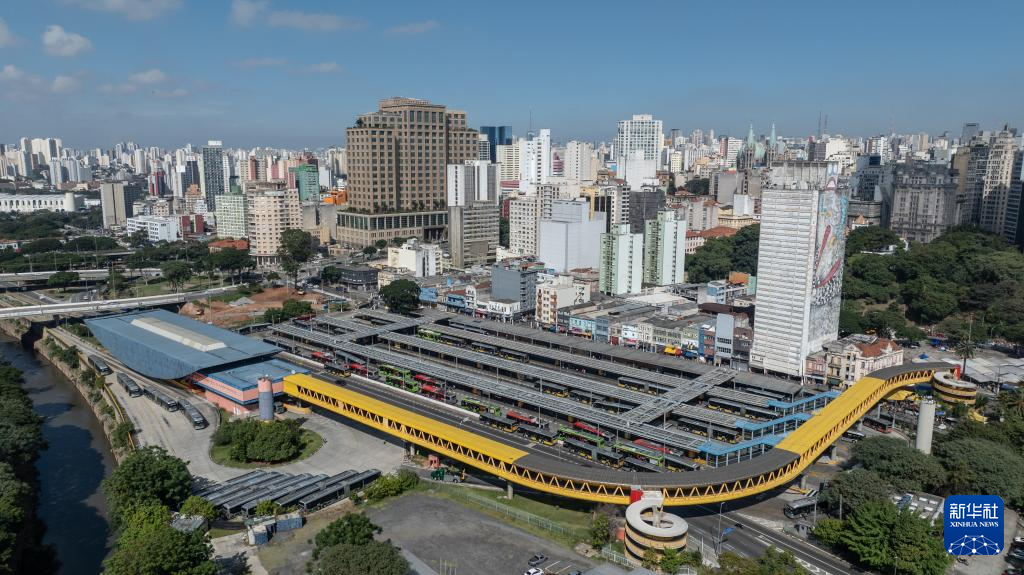 这是5月15日在巴西圣保罗拍摄的一处公交车枢纽(无人机照片)。