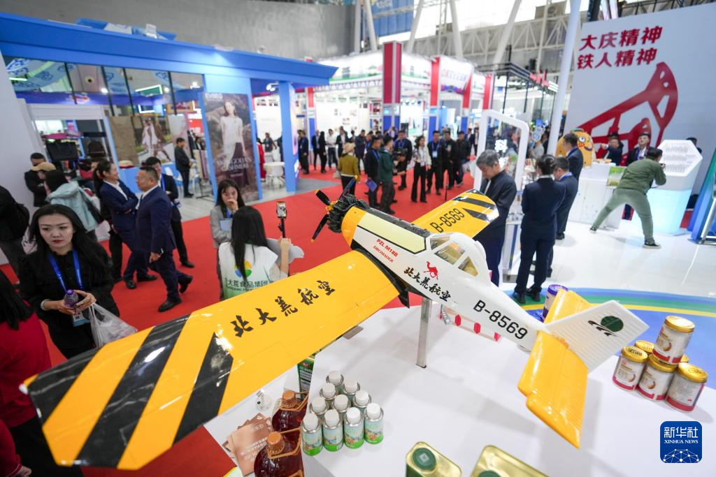 5月17日,参会者在第三十四届哈洽会北大荒集团展区参观。