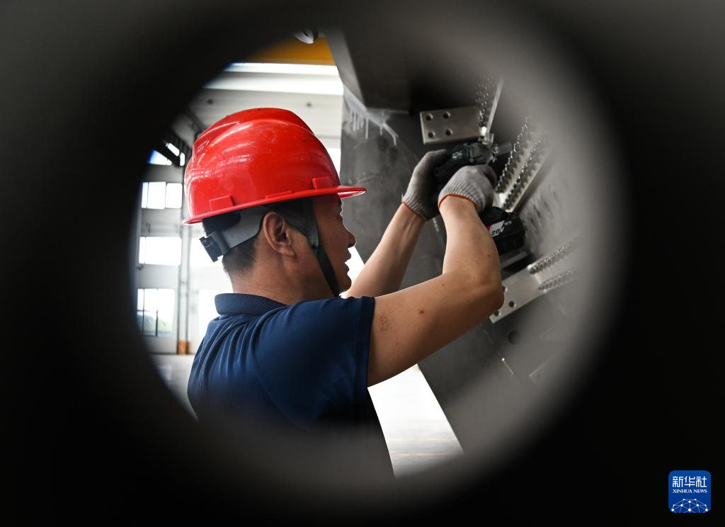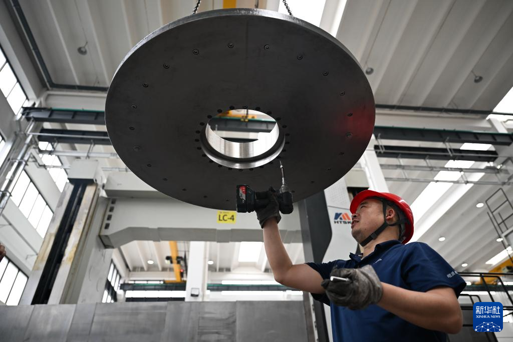 5月16日,工人在位于启东高新区的上海昭晟机电(江苏)有限公司生产车间忙碌。