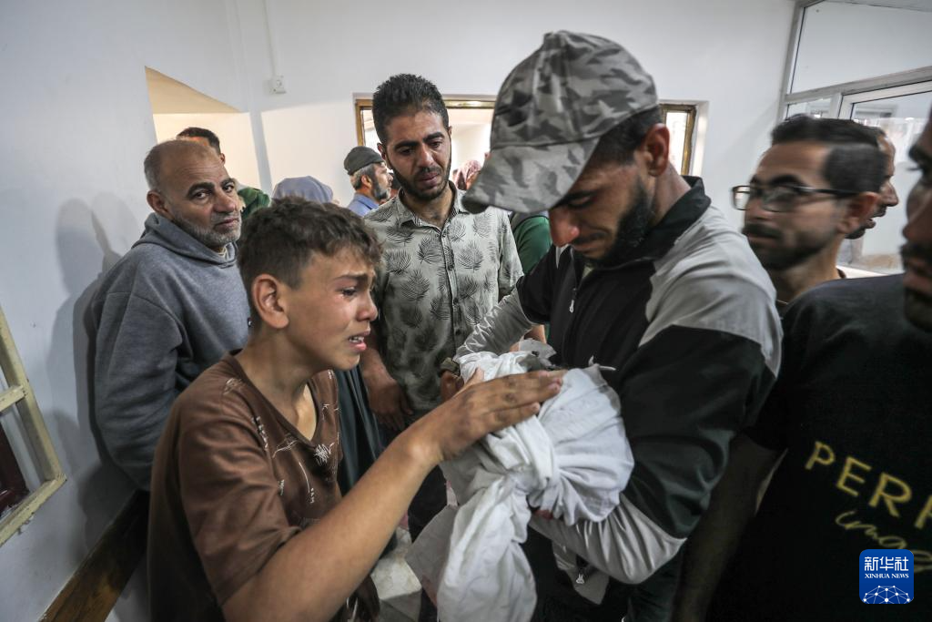 5月14日,在加沙地带北部杰巴利耶地区,巴勒斯坦人悼念遇难者。