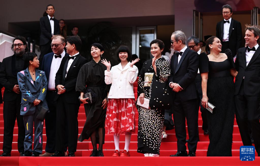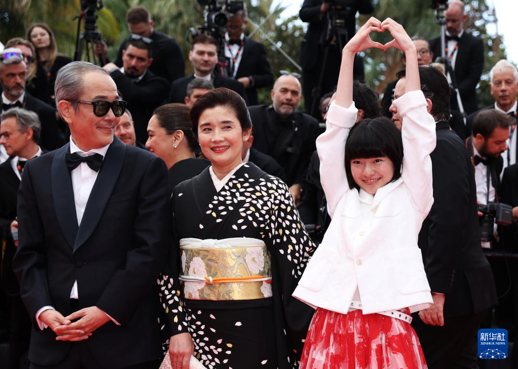 5月17日,在法国戛纳举行的第78届戛纳国际电影节上,主竞赛单元影片《雷诺阿》导演早川千绘(前左)和主演铃木唯(前右)在影片首映后走出电影宫。