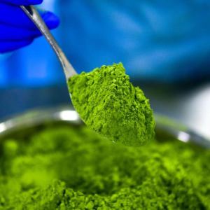 5月14日,在贵州省江口县贵茶产业园抹茶生产车间,工人在展示抹茶粉。