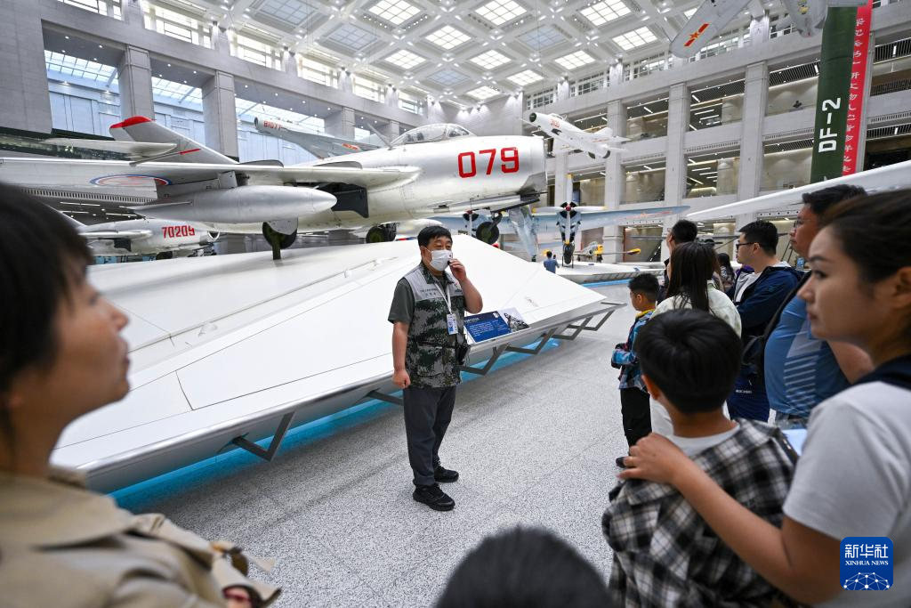 5月17日晚,志愿者在中国人民革命军事博物馆为参观者讲解。