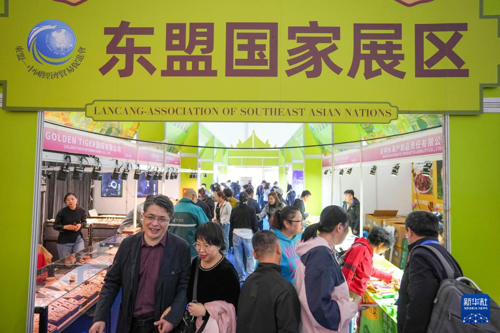 5月18日,人们在哈洽会东盟国家展区选购商品。