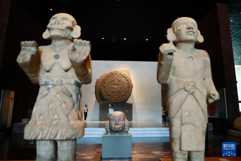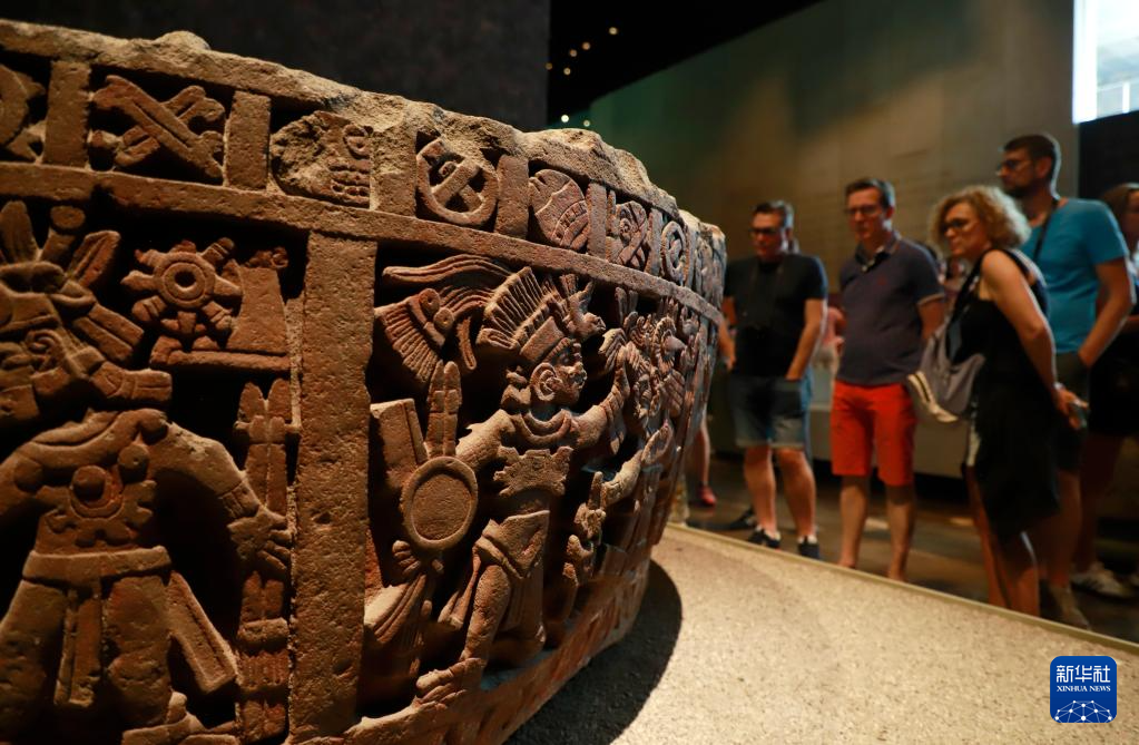 5月15日,游客在墨西哥首都墨西哥城国家人类学博物馆观看展品。