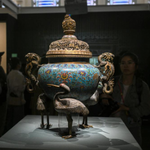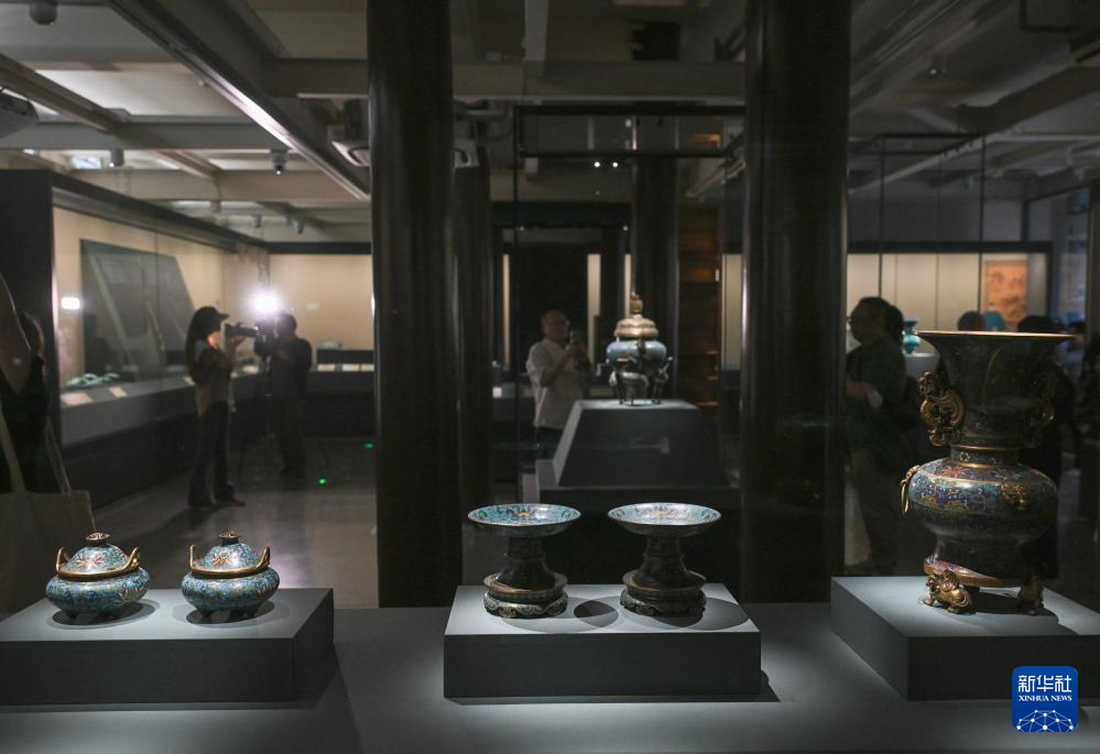 这是展出的清代掐丝珐琅鹤足炉(5月19日摄)。