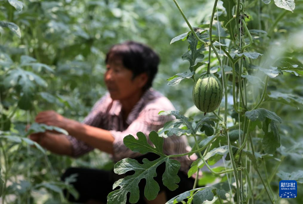 5月20日,在四川省乐山市水口镇,种植户在大棚开展管护工作。