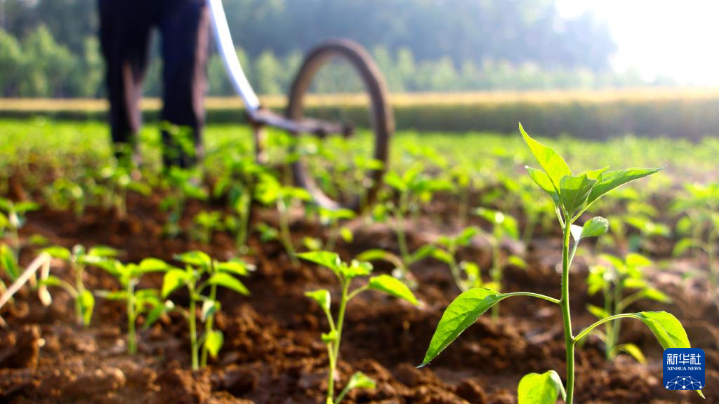 5月20日,河南省商丘市柘城县陈青集镇农民在田间给辣椒苗松土。