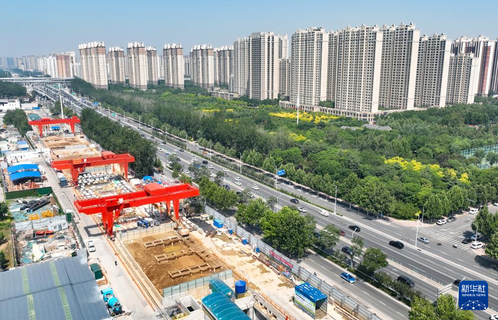 这是5月19日拍摄的河北省石家庄市地铁4号线体育公园站建设现场(无人机照片)。