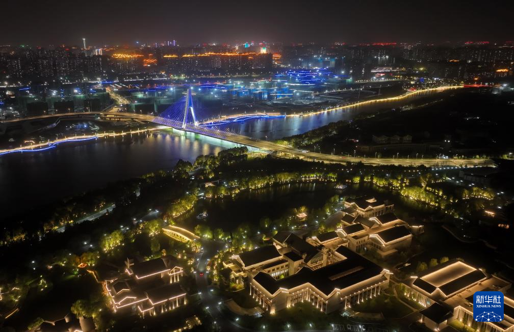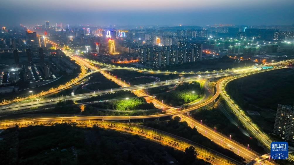 5月18日拍摄的石家庄市太平河片区夜景(无人机照片)。